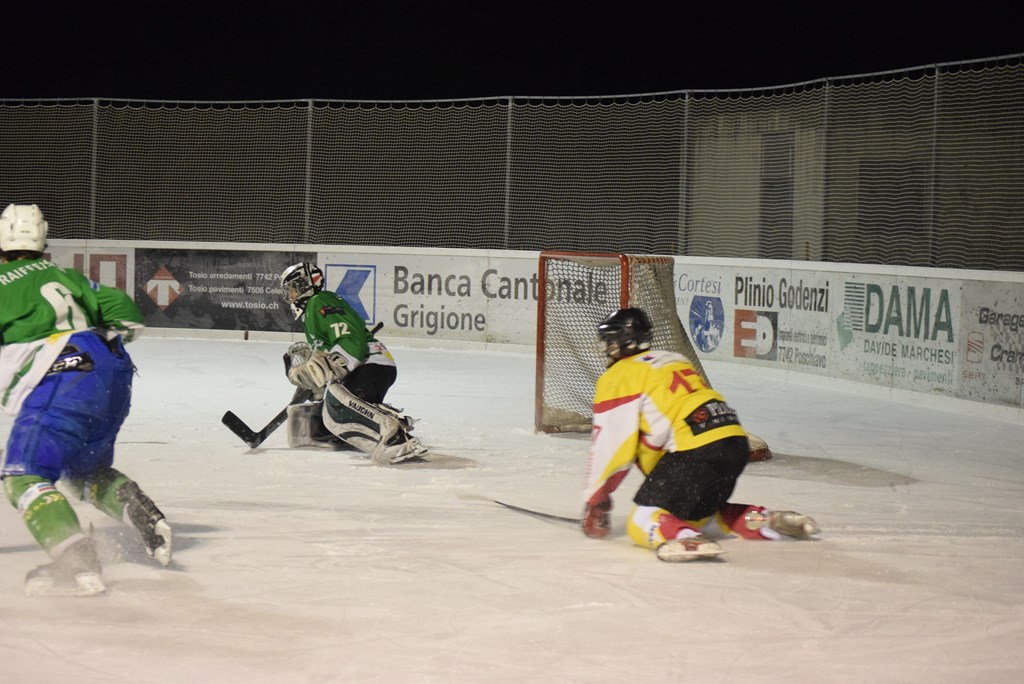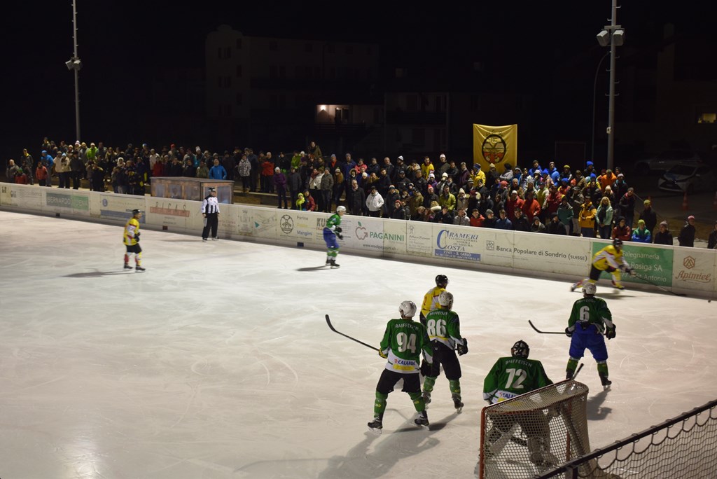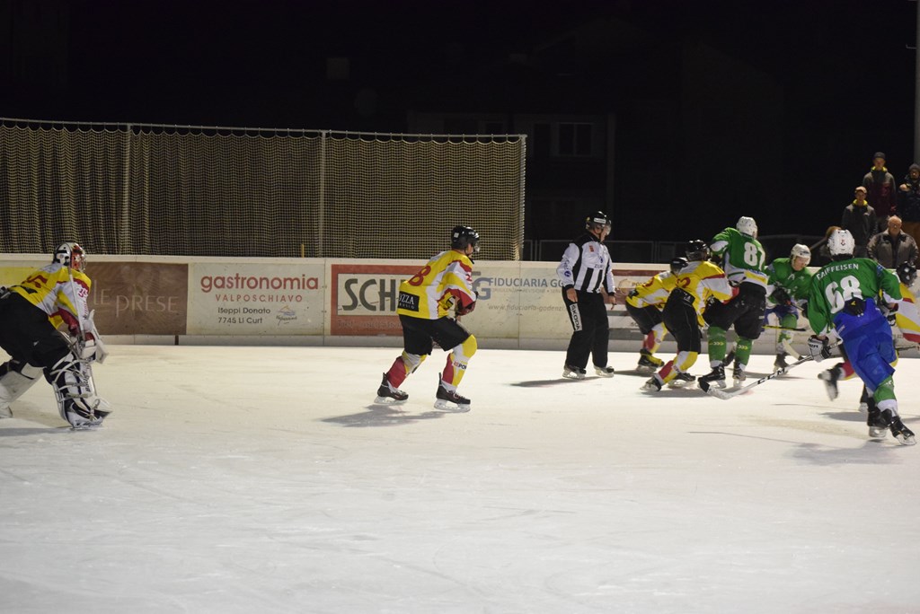 Un pubblico della grandi occasioni, 300 persone circa, e un tifo da stadio hanno fatto da cornice alla splendida e meritata vittoria dell'HC Poschiavo ieri sera in quel di Le Prese.