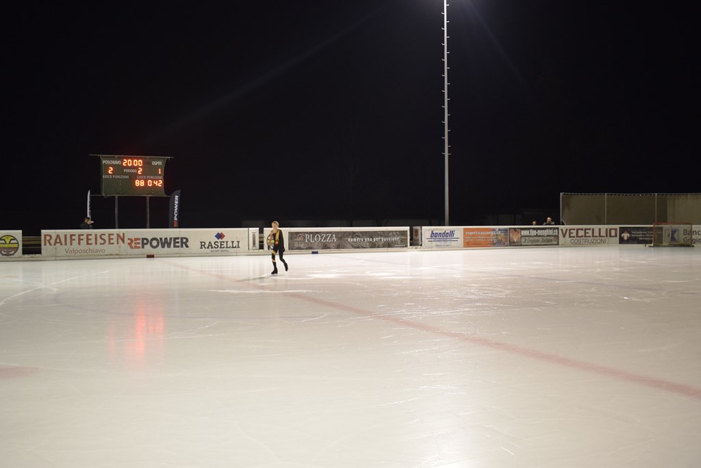 A fine primo tempo, durante la pausa, il pubblico ha potuto assistere all'esibizione della brava pattinatrice di Pagnoncini Simona Crameri.