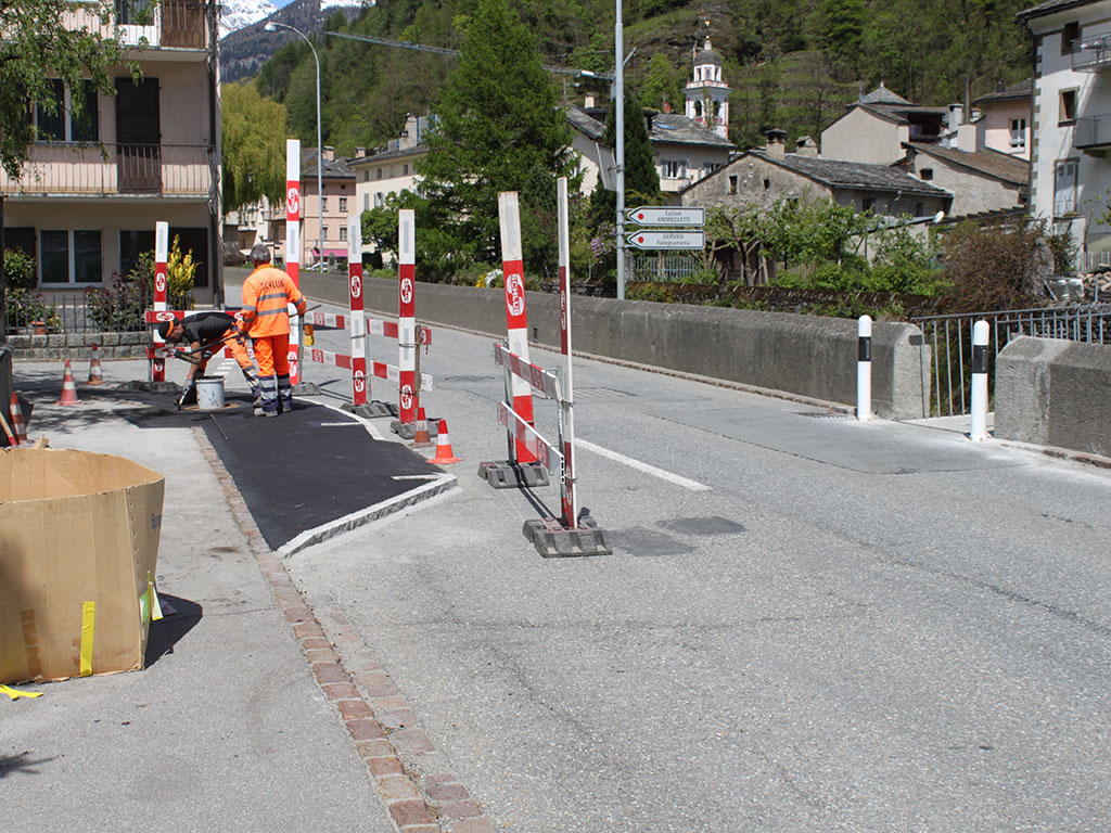 Attraversare la strada cantonale per imboccare la passerella che porta al borgo sar&a ...
